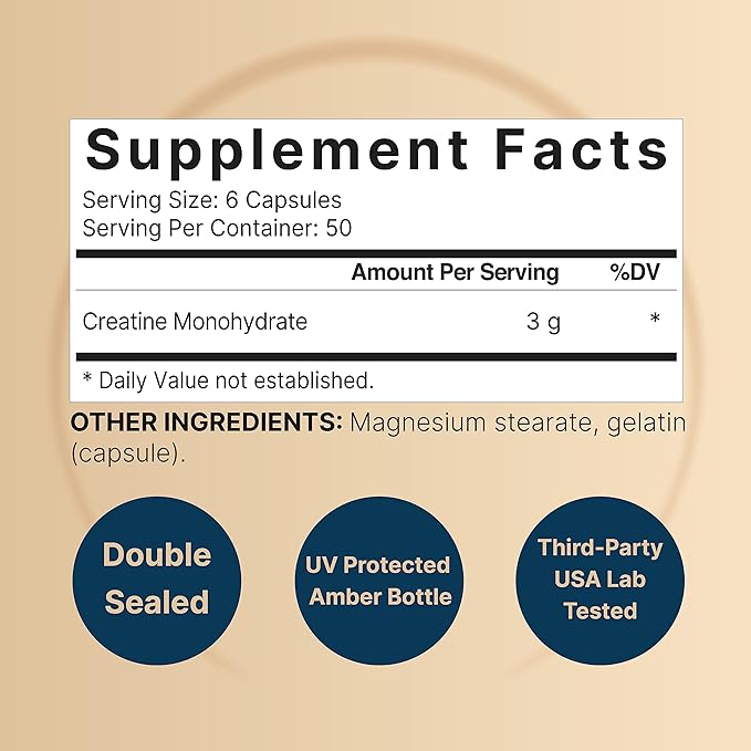 Creatine Monohydrate Capsules 3,000mg Per Serving, 300 Count | Micronized, Unflavored Creatine Pills | Pre-Workout & Muscle Strength Support | Easy to Swallow, Filler-Free | 50 Servings
