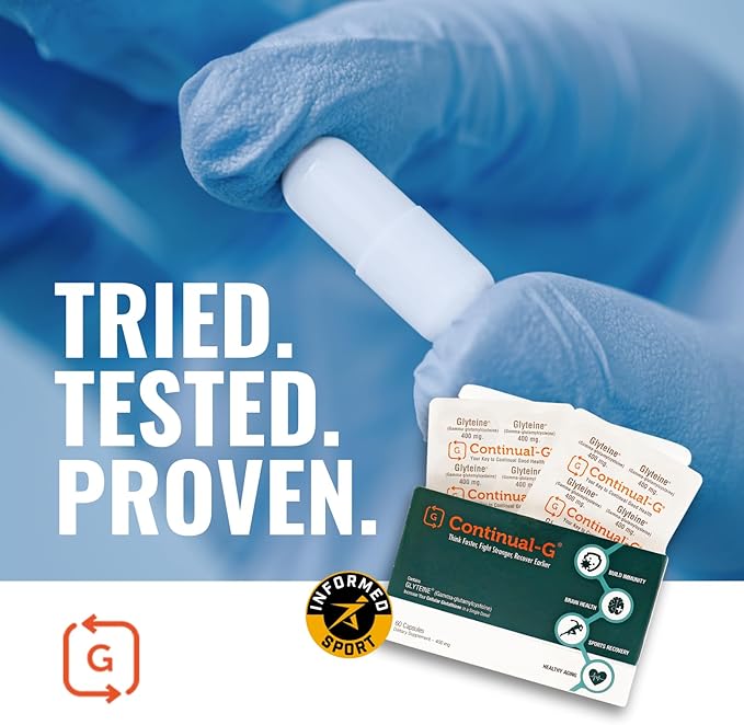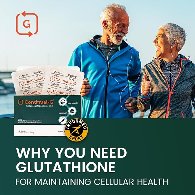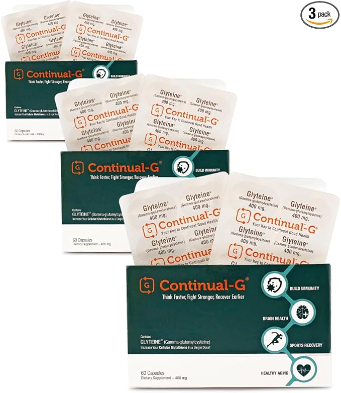 CONTINUAL - G Glyteine 400 mg Capsules | Cellular‑Enhancing Glutathione Supplement | Powerful Antioxidant Support | 90‑Day Supply (180 Capsules)