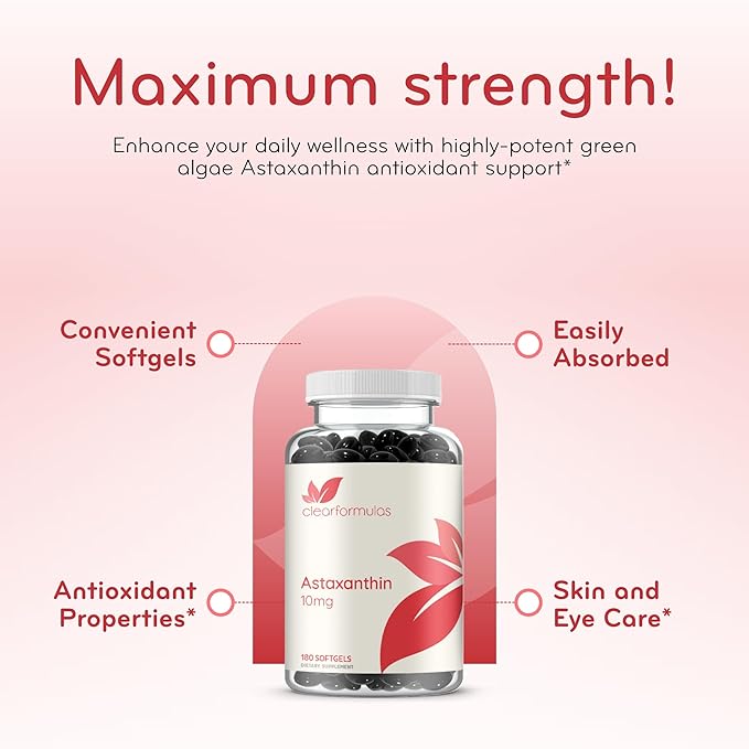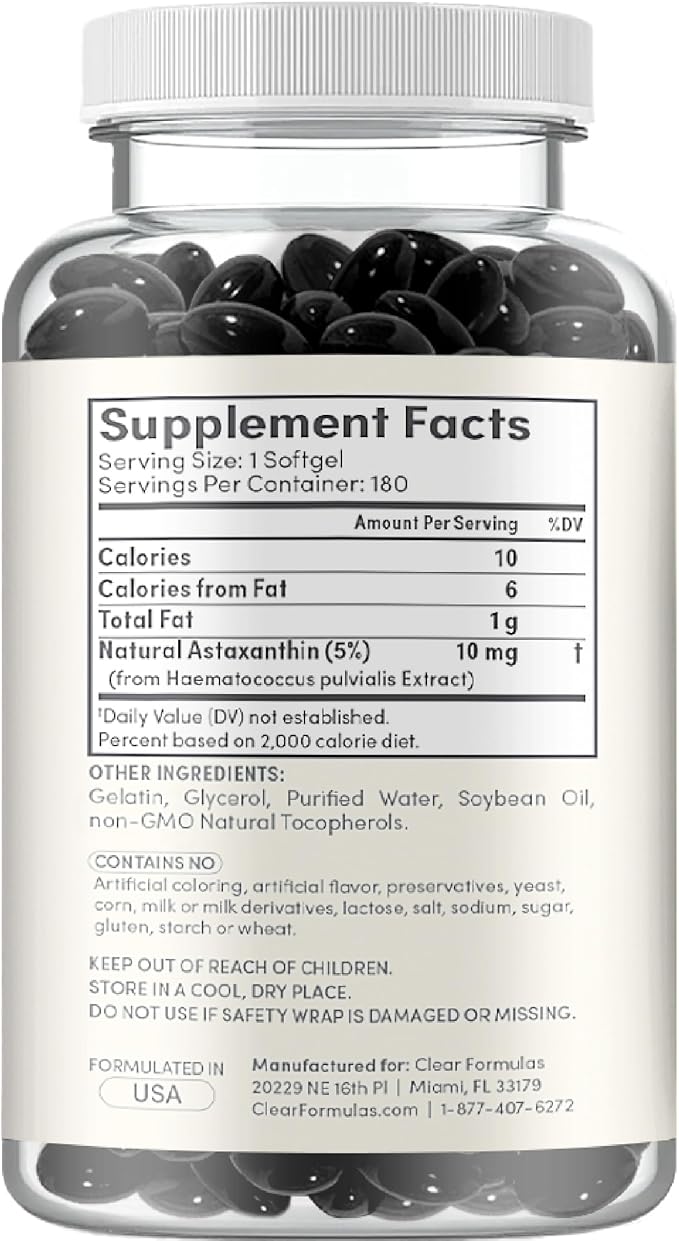 - Precision Dosage: Our astaxanthin supplements are made with a carefully dosed 10mg serving and include natural vitamin E and soybean oil to enhance absorption so you get more out of every softgel