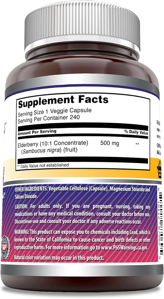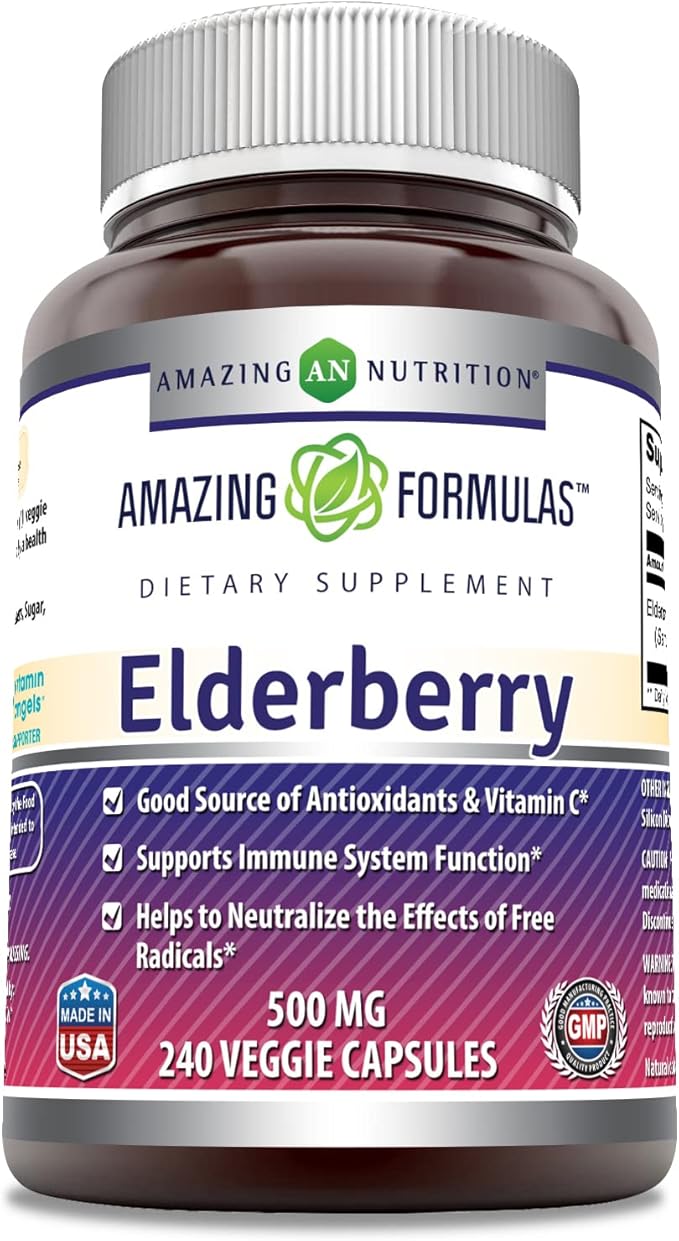 Amazing Formulas Elderberry (10:1 Concentrate) Supplement | 500 Mg per Serving | 240 Capsules | Non-GMO | Gluten-Free | Made in USA