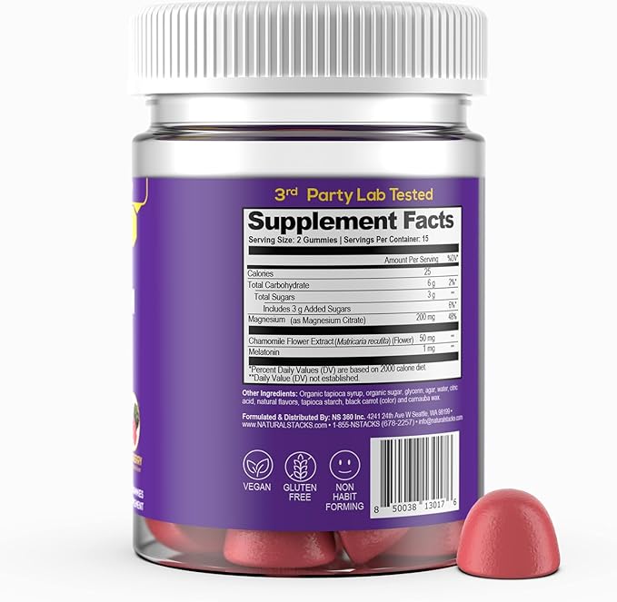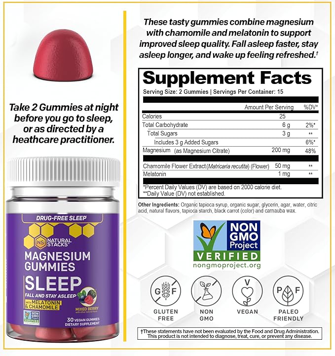 - 💤 Experience MagSleep 💤 - Get all the support you need to fall asleep faster, stay asleep longer, and wake up feeling refreshed with Natural Stacks Magnesium Sleep gummies. This magnesium citrate sleep supplement is combined with Chamomile and Melatonin to support improved sleep quality.
