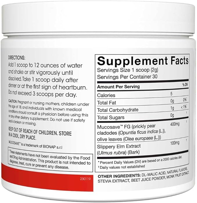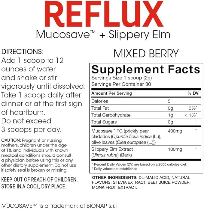 Reflux - Digestive Supplement - Each Tub = 30 Scoops = 30 Servings - Mucosal Support for Acid Issues - with Mucosave FG and Slippery Elm Bark (1 Tub)