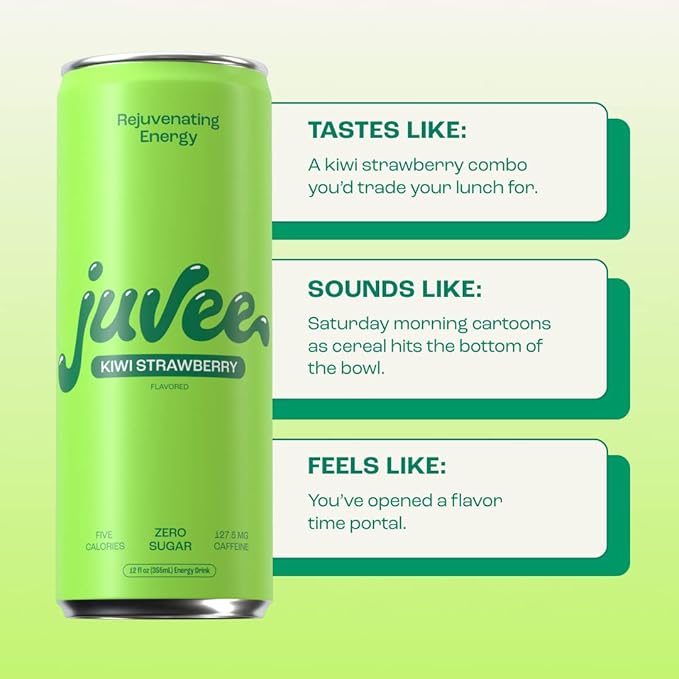 - Immunity Support For Well Being: Every sip of Kiwi Strawberry Juvee is packed with Vitamin C to give you the immunity boost you need to feel healthy and energized. For daily immune support, Juvee delivers 80% of the daily recommended value of Vitamin C, so you can sip with confidence knowing that you're doing something good for your body. So whether you're a gamer, creator, student, or just working through the day, Juvee helps you stay healthy and feel great while you connect, create, and play!