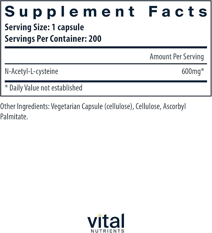 Vital Nutrients NAC 600mg | N-Acetyl Cysteine | Vegan NAC Supplement | Antioxidant for Sinus, Liver, Immune, and Respiratory Health* | Gluten, Dairy, Soy Free | 200 Capsules
