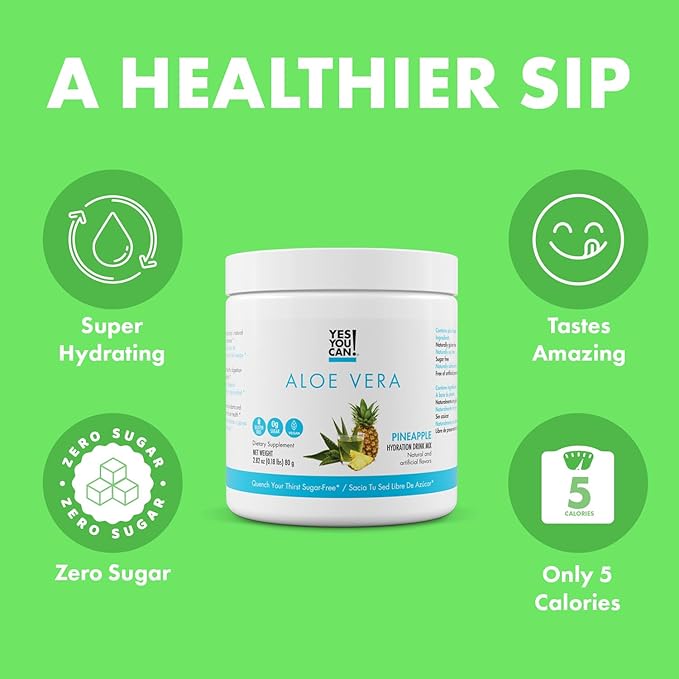 - PROMOTES PROPER HYDRATION: Yes You Can! Aloe Vera Drink Mix is an ideal organic drink mix for dehydration. Stay hydrated in a delicious and healthy way with a water-dense plant like aloe vera. At Yes You Can, we pride ourselves on using all natural ingredients in our supplements.