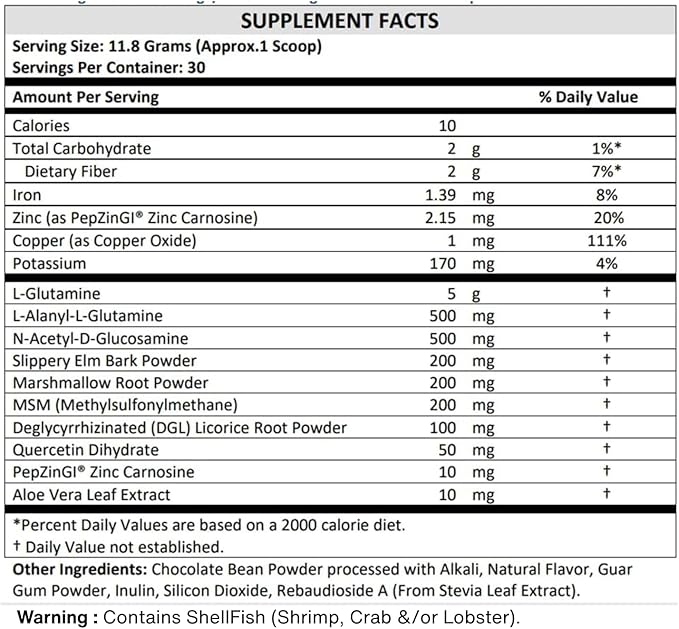 TERRA ORIGIN Healthy Gut Chocolate | 30-Servings with L-Glutamine, Zinc, Glucosamine, Slippery Elm Bark, Marshmallow Root and More!