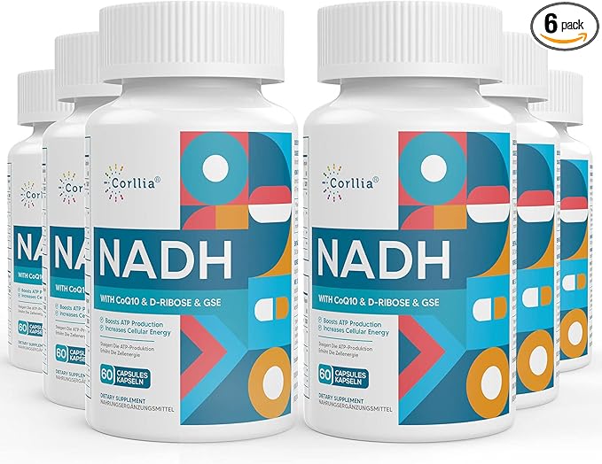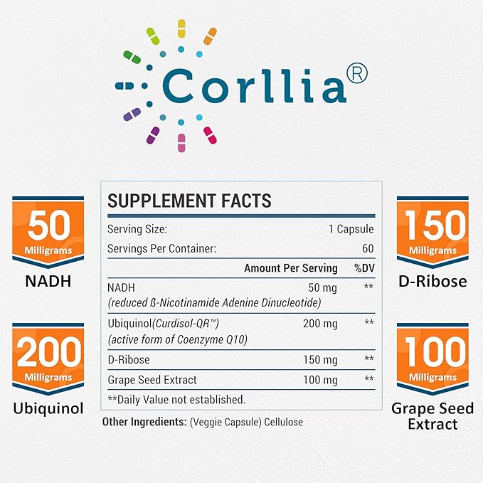 Corlia NADH 50mg + CoQ10 200mg + D-Ribose 150mg Supplement, Enhance NAD+ Supplement for Energy, Fatigue, Reduced Nicotinamide Adenine Dinucleotide, 360 Veggie Capsules
