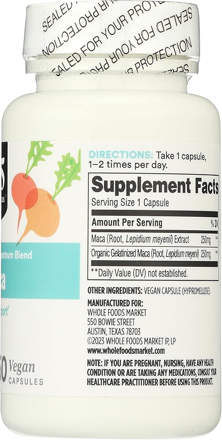 365 by Whole Foods Market, Maca Standardized + Full Spectrum Blend, Libido Support, Vegan Capsules, 60 Count