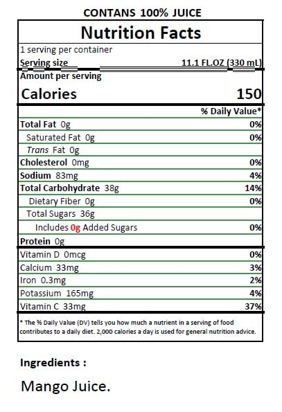 - Pure: 100% Mango Juice with only one ingredient: Mango Juice. No artificial sweeteners, no sucralose, no aspartame, no sugar water. Namai mango juice is a great source of a clean energy boost.