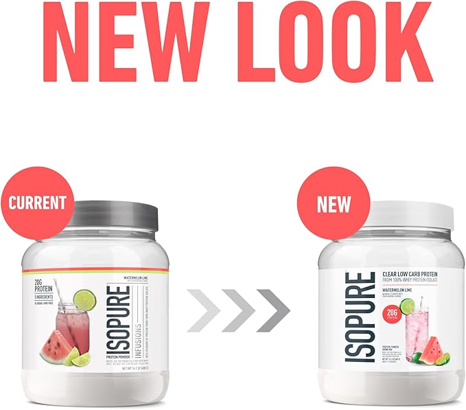 Isopure Clear Whey Isolate Protein Powder, Lactose Free, Gluten Free, Naturally Flavored, Watermelon Lime, 20g Protein Per Serving, 14.1 Oz, 16 Servings (Packaging May Vary)