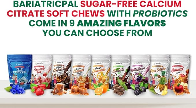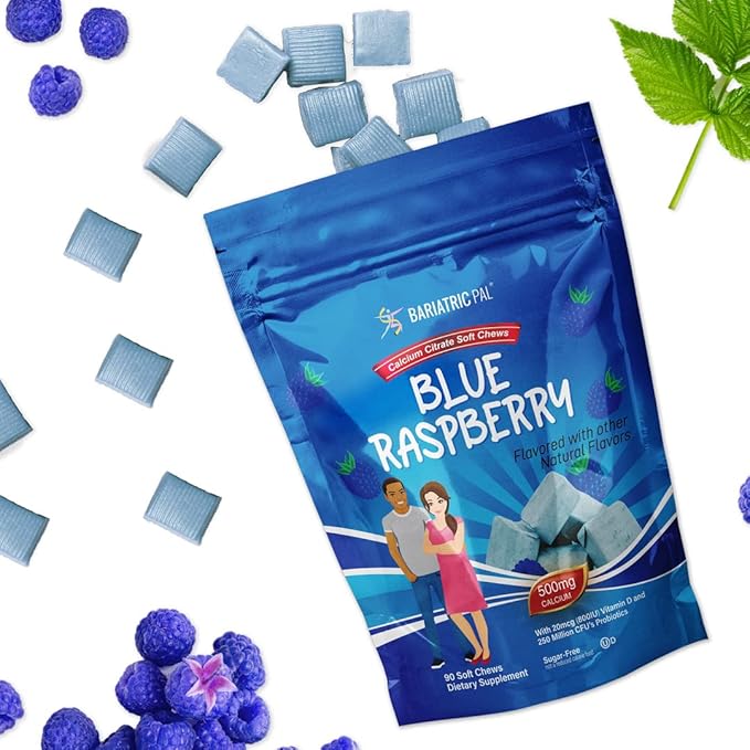 BariatricPal Sugar-Free Calcium Citrate Soft Chews 500mg with Probiotics (90 Count) - Blue Raspberry