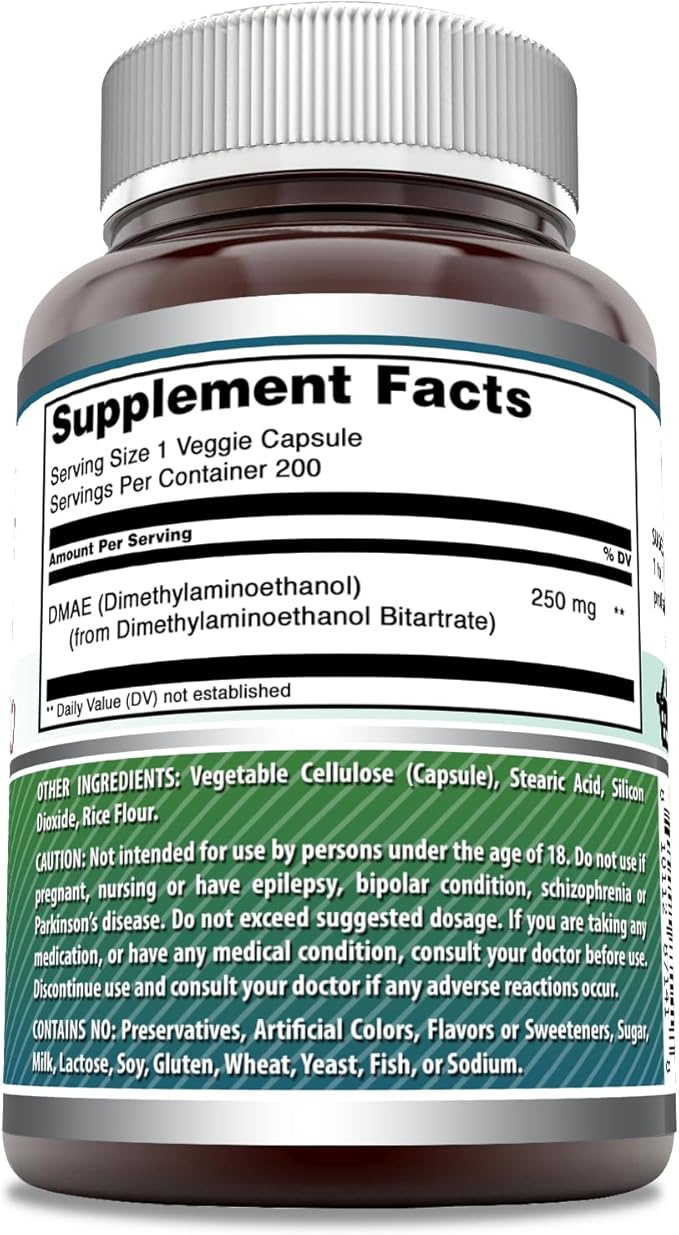 - DMAE 250 mg Per Serving Supplement