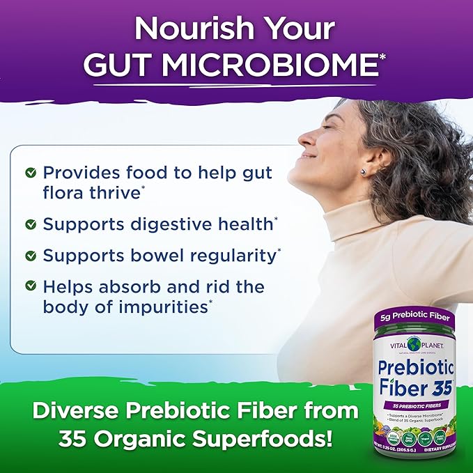 - Expertly Formulated - Vital Planet founder Brenda Watson and her team of digestive care experts and scientists have been successfully formulating natural digestive care solutions like Prebiotic Fiber 35 Superfood Powder for decades using the latest microbiome research and discoveries to guide them. This diverse formula is unflavored with a mild taste making it an easy and versatile way to up your fiber and feed your microbiome every day for overall health.