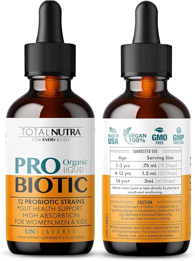 - THE LIQUID EDGE: Adult & Kid probiotic supplements should give you results – but many womens & mens probiotic supplements are a waste of time & money. Total Nutra Liquid Probiotics for women & men are formulated for fast, direct uptake in the gastrointestinal tract, with a 98% absorption rate. Quick & easy to take, our probiotic supplement eliminates the hassle of choking down chalky, hard-to-swallow pills or artificially sweetened gummies.