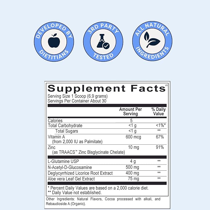 The Gut Soother L-Glutamine Powder Supplement: Restore Gut Lining, Soothe Digestive Discomfort While Promoting Overall Gut Health, 30 Servings (Chocolate)