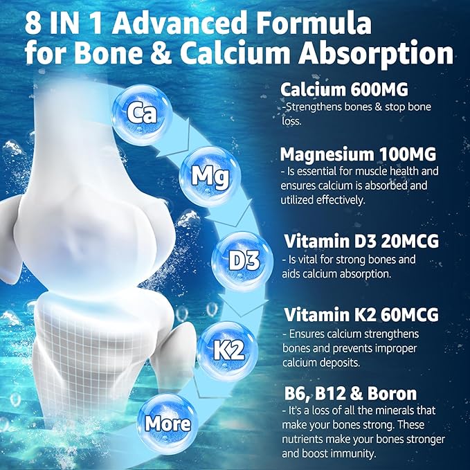 - 【8 in 1 Formula for Stronger Bone】: Our Alage Calcium gummies contains calcium, magnesium, D3 and other bone nutrients. These vitamins and minerals help increase bone mineral density and promote healthy teeth. By combining the benefits of these calcium gummies with exercise, our calcium gummies can help build and maintain stronger bones.