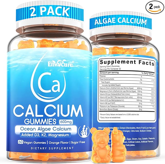 - 【Calcium Supplement for Women - Ocean Algae Calcium】: These calcium gummies are made with organic ocean algae, a plant sourced from the South American Ocean. Algae provides crucial bone minerals, including calcium, D3, and magnesium.* As an organic calcium supplement, algae calcium offers optimized absorption and bioavailability, providing a 60% more elemental calcium than calcium citrate. You can effectively use more of the calcium found in the gummies, helping to support strong and healthy bones. Designed for women who lack of calcium.