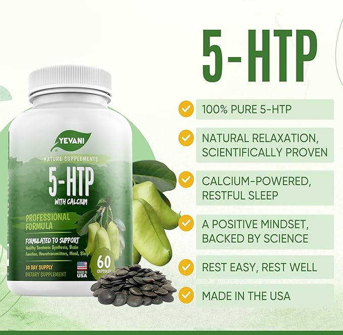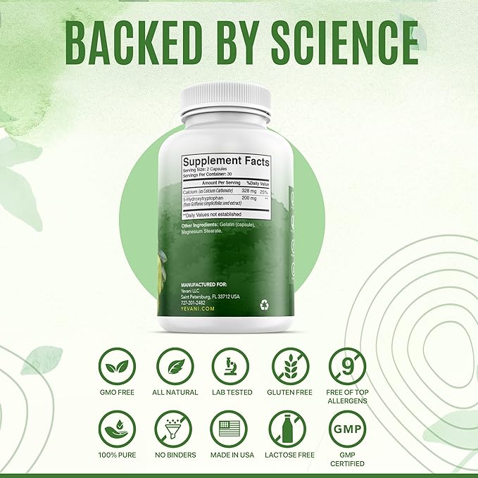 - MADE IN THE USA - YEVANI is a family-owned and operated company, our 5-HTP supplement is manufactured in a GMP-certified facility and are gluten-free, dairy-free, and non-GMO