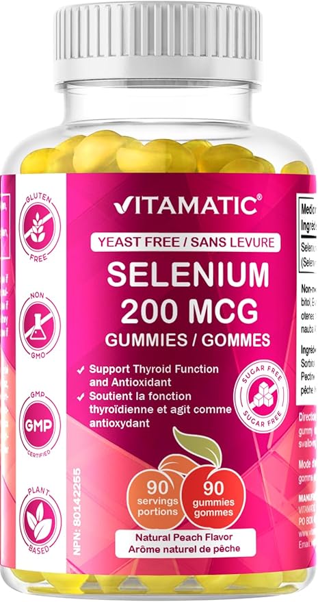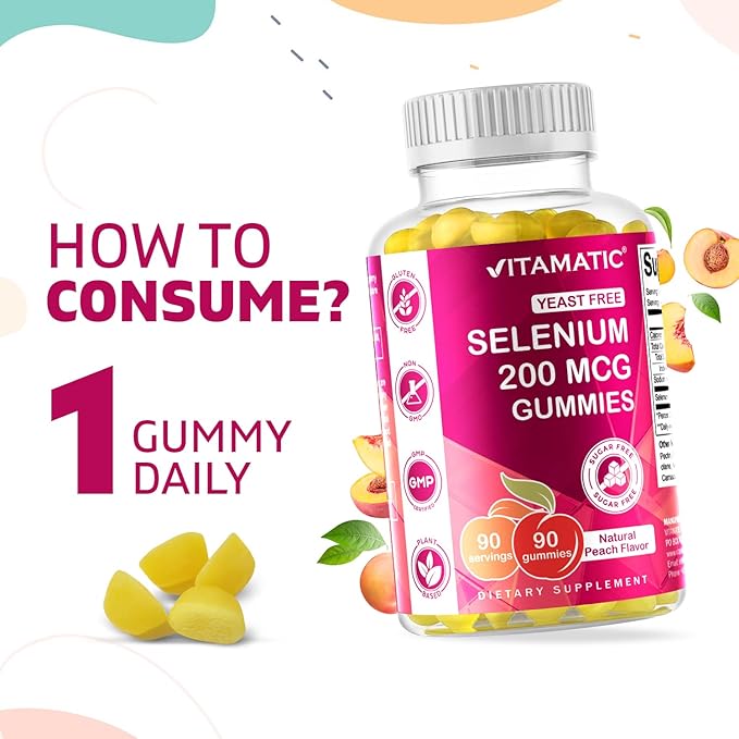 Vitamatic Yeast Free Selenium Gummies 200mcg as Selenomethionine Supplement Essential Trace Mineral with Superior Absorption 90 Pectin Based Gummies