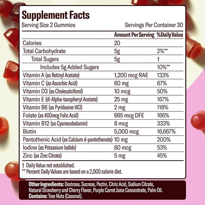 - SUPPORTS HEALTHY HAIR, SKIN, AND NAILS: These gummies are not only great for your skin but also help keep your hair and nails healthy and strong. They contain biotin (also known as Vitamin B7) which supports your body’s keratin structures, keeping your hair and nails strong and healthy.