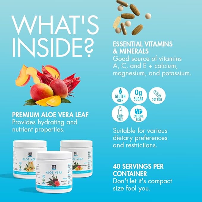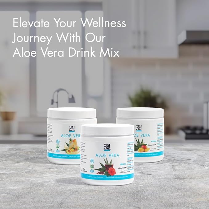 - PROMOTES PROPER HYDRATION: Yes You Can! Aloe Vera Drink Mix is an ideal organic drink mix for dehydration. Stay hydrated in a delicious and healthy way with a water-dense plant like aloe vera. At Yes You Can, we pride ourselves on using all natural ingredients in our supplements.