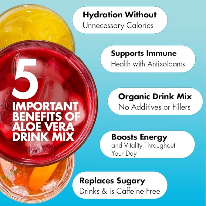 - LOW CALORIE: There are so many ways to stay hydrated, like drinking water, juice, or using ingredients like prunes and ginger. But what about a hydrating beverage without any unnecessary calories? That's why we created our Aloe Vera drink mix powder.