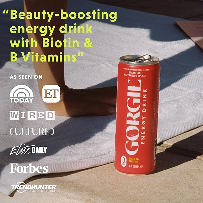 GORGIE Sugar Free Natural Energy Drinks, Sparkling Watermelon Crush (12 Pack) - Healthy Energy Drink - Natural Coffee Replacement with Green Tea Caffeine and Biotin, 150mg Caffeine, Vegan, Low Calorie