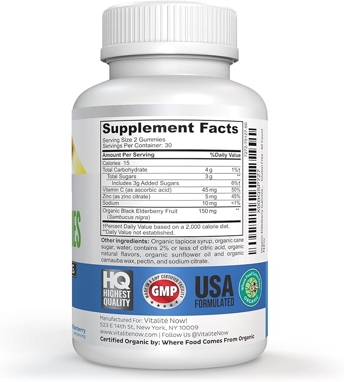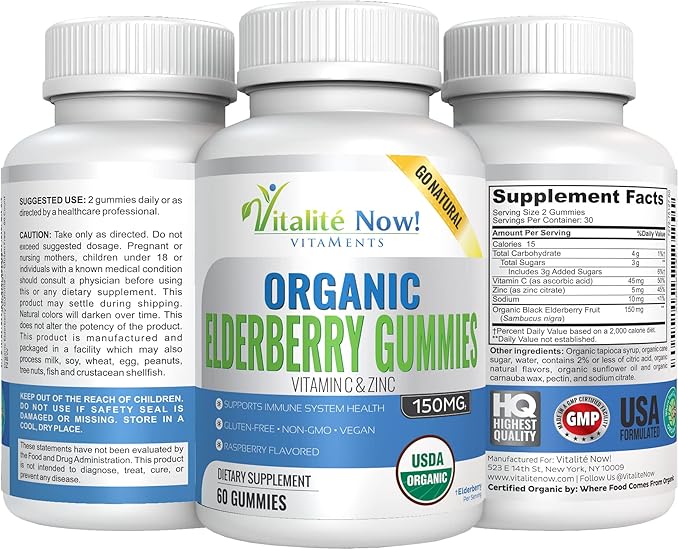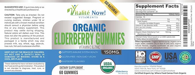 - Vitalite Now Organic Elderberry Gummies are USDA certified natural immune system boosters with high potency and concentration natural Sambucus Extract.