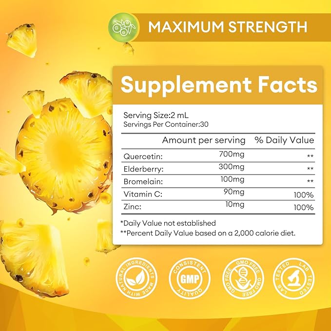 - Tasty Pineapple Flavor: Quercitin liquid drops for kids and adults that taste delicious without any fillers, binders, or additives. Each bottle comes in a delicious Pineapple Flavor so all you have to do is simply add to water or your favorite food or drink