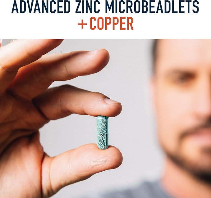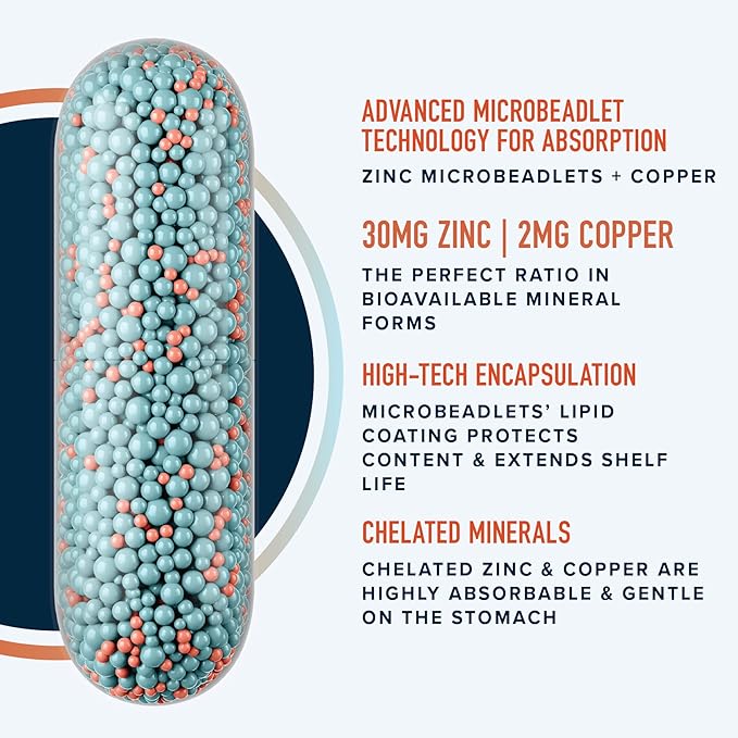 Zinc Supplement Microbeadlets for Immune & Acne Support | Highly Absorbable Zinc Bisglycinate & Orotate with 2mg Chelated Copper + Vitamin B6 | Vegan, Gluten-Free | 60 Capsules (2 Month Supply)
