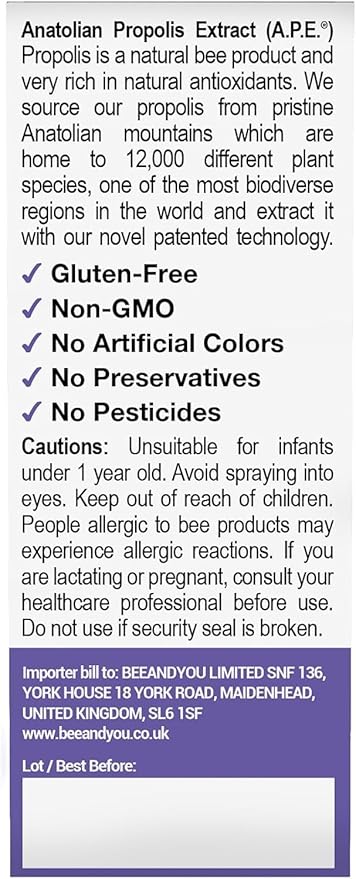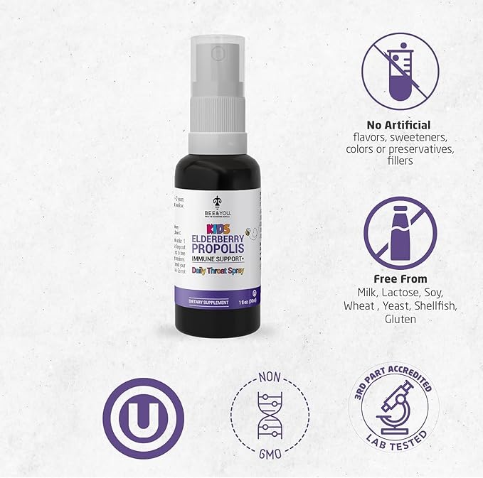 - FOOD SAFETY & HIGH QUALITY: Our products are produced by Contracted Beekeeping to ensure the highest quality and traceability from our hives to your table. They are also tested for purity, antioxidant content, and compliance with food safety standards. Our products are GMP, BRC, ISO 22000, ISO 9001, IFS, and OU Kosher certified. Suggested Use: For children aged 2-12, spray four times into the mouth and swallow twice per day.