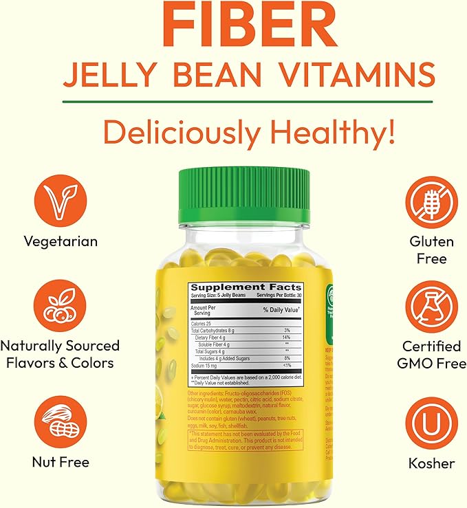 - FIBER JELLY BEANS FOR ADULTS The best way to take daily supplements - our Fiber Jelly Beans for Adults are an easy and enjoyable way to add essential Fiber to your nutrition routine. Fiber Jelly Beans have a delicious Lemon Blast flavor and unique chewable jelly bean texture. A healthy dose of fiber every day can keep all systems in high gear, for wherever your day takes you!