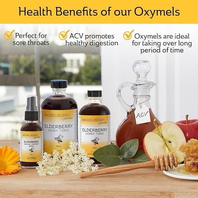 - Immune-Boosting Herbal Tonic: Mickelberry Gardens Elderberry Syrup combines the power of organic elderberry, raw honey, and organic apple cider vinegar (ACV) to provide comprehensive immune support throughout the seasons.