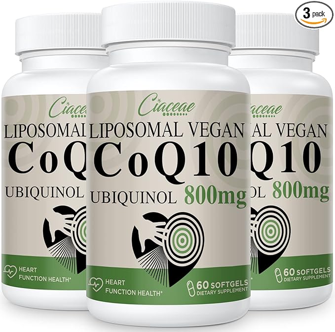 Liposomal CoQ10 800mg Ubiquinol Softgel, Max Absorption Ubiquinol Coenzyme Q10, Ubiquinol CoQ10 Supplement for Antioxidant, Heart Function & Energy Production, Pure CoQ10 800mg, 180 Vegan Softgels