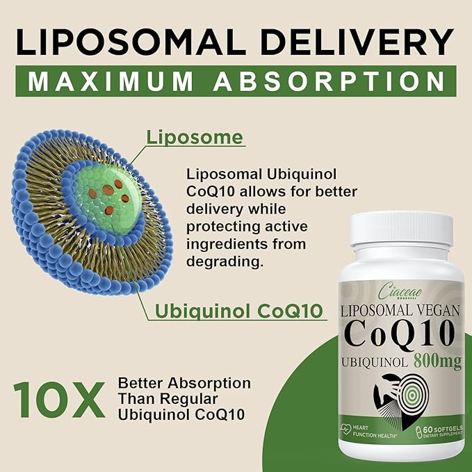 - 10X HIGH ABSORPTION WITH LIPOSOMAL: Liposomal CoQ10 is a form of Coenzyme Q10 (CoQ10) that has been encapsulated in liposomes, this can help ensure that the CoQ10 is delivered to the cells so that you can win more than 99% absorption rate, up to 10x