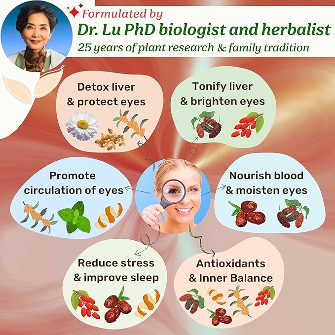 - 🌿 EYE & LIVER CARE: Created by Dr. Lu, Ph.D., a renowned biologist and herbalist with over 25 years of research. This eyebright tea supports eye health and sight care, complementing other eye health supplements to provide a holistic approach to visual wellness.