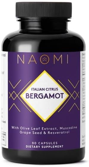 NAOMI Italian Citrus Bergamot 500mg + Resveratrol, Award-Winning Cardiologist Dvlpd, Supports Normal Cholesterol & Healthy Cellular Function, 7 Key Polyphenols, Resveratrol & Olive Leaf, 90-Day Supply