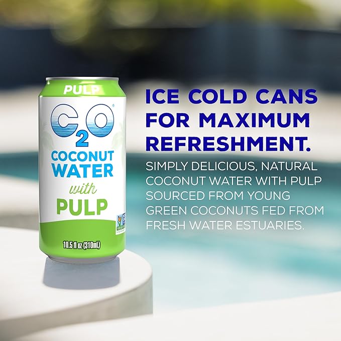 C2O - Coconut Water with Pulp (24 Pack, 3 Boxes of 8) - Made with Fresh Coconut Water - Plant Based, Non GMO Canned Water - Natural Hydration, Essential Electrolytes, & Potassium - 24 Cans, 10.5 FL OZ