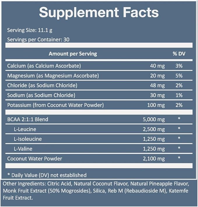 - Sunflower fermented BCAA's and the right ratio of electrolytes in the quantity your body needs for optimal hydration and performance, and 0g of sugar!
