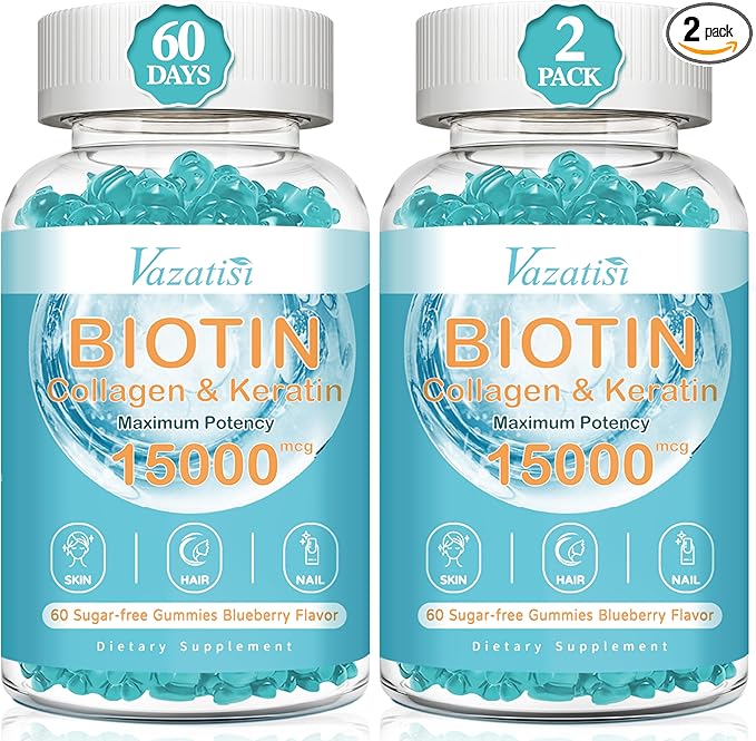 - PURE INGREDIENTS YOU CAN TRUST — Vazatisi hair skin and nails gummies are non-GMO and free from artificial colors, gluten, dairy, soy, sugar, and nuts. All collagen and biotin gummies are third-party tested for purity and made in a GMP-compliant facility. If you have questions, feel free to contact us as your satisfaction is our top priority