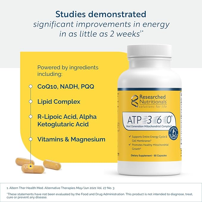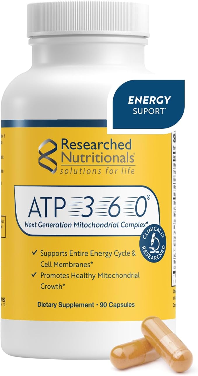 Researched Nutritionals ATP 360 Mitochondrial Supplements - ATP Supplements with Coq 10 & Vitamins for Energy Support - Help Repair Mitochondrial Membranes (90 Capsules)