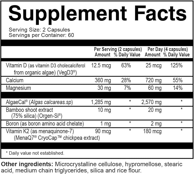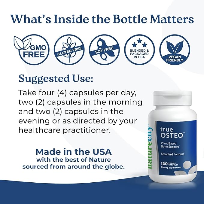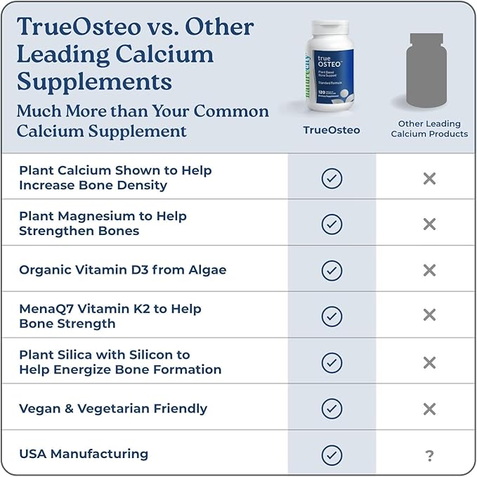 NatureCity True-Osteo Plant-Based Supplement for Bone Strength | AlgaeCal Calcium & Magnesium, Plant-Based Vitamin D3, Vitamin K2, Silicon| Gentle on Stomach (240 Capsules)
