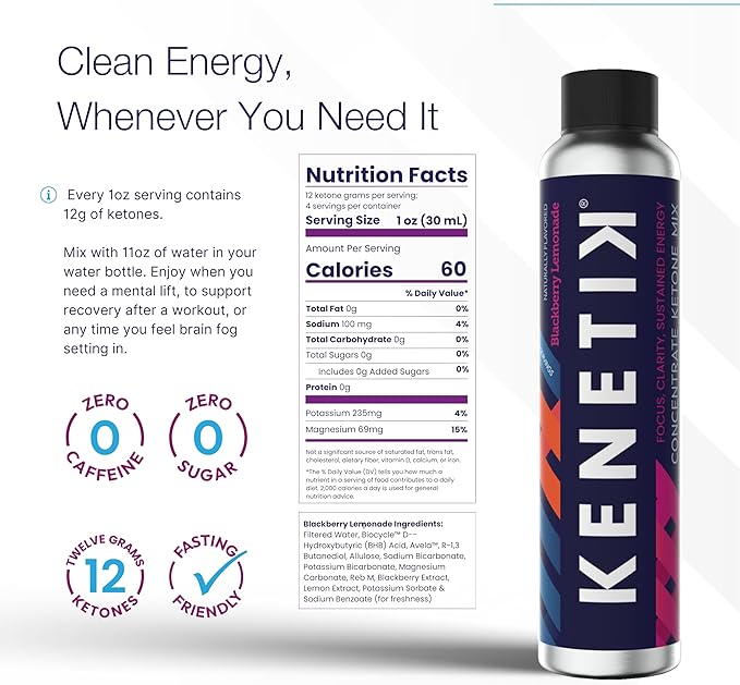 - CLEAN ENERGY DRINK: Kenetik redefines clean energy with the first patented blend of pure ketones - your brain and body's preferred source for sustained energy, sharper focus and faster recovery.