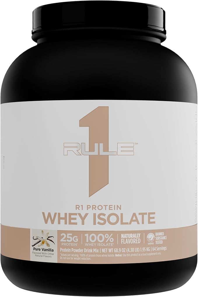 Rule 1 Naturally Flavored R1 Protein Whey Isolate - Clean Formula with 25g Protein & 6g BCAA Exclusively Isolated & Hydrolyzed Sources for Workout Recovery (4.3 Pounds*, Pure Vanilla)