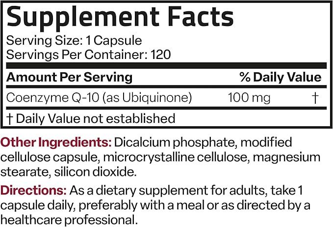 - Cellular Energy Production*: Bronson CoQ10 provides 100 MG of CoEnzyme Q-10 as Ubiquinone per vegetarian capsule. CoQ10 is a vitamin-like nutrient that plays a key role in cellular energy production.* CoQ10 is an antioxidant that is produced by the body, but its levels naturally decline over time.
