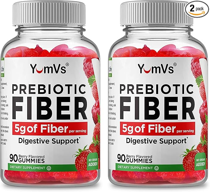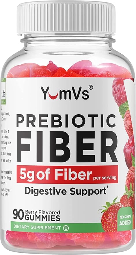 Yum-Vs - Prebiotic Fiber Gummies for Adults & Kids - 5g Digestive Aid Gummy Fiber Supplement - Keto Friendly Prebiotic Daily Fiber Supplement for Women & Men - No Sugar Added Dietary Fiber (90 Count)