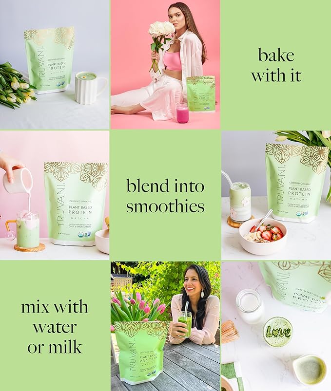 Truvani Vegan Pea Protein Powder | Matcha | 20g Organic Plant Based Protein | 1 Serving | Keto | Gluten & Dairy Free | Low Carb | No Added Sugar