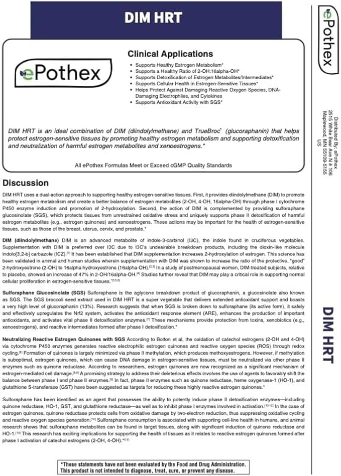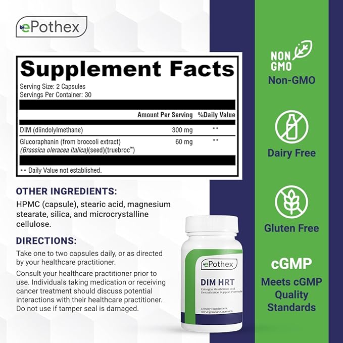 - FEATURING TRUEBROC: DIM HRT encourages your body to metabolize excess estrogen, which many of us have due to a variety of environmental factors. That's why we added Truebroc (glucoraphanin from broccoli extract) to maximize detoxification and help you get the most from this premium estrogen metabolism supplement. This helps protect against damaging reactive oxygen species, DNA-damaging electrophiles, and cytokines.*