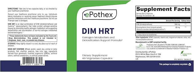 - PREMIUM QUALITY: This formula contains NO Wheat, gluten, yeast, soy, animal or dairy products, fish, shellfish, peanuts, tree nuts, egg, ingredients derived from genetically modified organisms (GMOs), artificial colors, artificial sweeteners, or artificial preservatives. Active ingredients are verified by third-party testing and DIM HRT is manufactured in a facility that is certified GMP compliant with NSF standards.