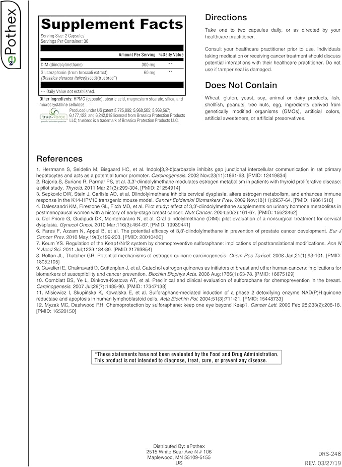 - FORMULA ROOTED IN SCIENCE: An ideal combination. 300mg of DIM (diindolylmethane) is a well-studied, natural compound found in cruciferous vegetables like broccoli. With 60mg TrueBroc (glucoraphanin from broccoli seed extract), Sulforaphane (SGS) helps phase 2 detoxification to promote healthy estrogen metabolsim*